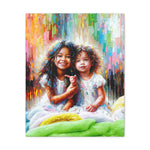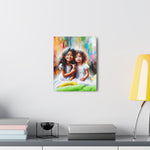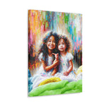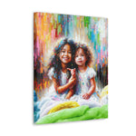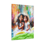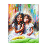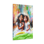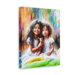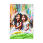 Introducing 'Besties', a beautiful painting of two young sisters who are best friends. This piece of art is sure to bring a smile to your face and a warmth to your heart.