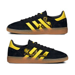 Step into the glow with the Golden Master Bruce Leroy Adidas! Inspired by the legendary Bruce Leroy from the cult classic movie "The Last Dragon," these sneakers combine bold style with unmatched flair. Featuring striking gold accents against sleek black suede, these shoes are designed for those who strive for greatness. Channel your inner master and conquer the streets with every step. Don't miss your chance to own a piece of cinematic history. Get your glow on now!