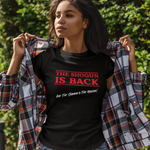 This T-shirt combines the timeless comfort of Ringspun Cotton with a bold graphic that captures the essence of the Shogun’s return. The stark red lettering stands out against the classic black backdrop, ensuring that your comeback is as memorable as the Shogun's.