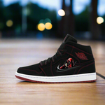 Unleash your inner anti-hero with the "Come Fly With Me" Hero's Flight: Deadpool Edition Jordan 1s! These custom sneakers are not just footwear; they’re a statement, a blend of style, humor, and unstoppable energy, just like Deadpool himself.