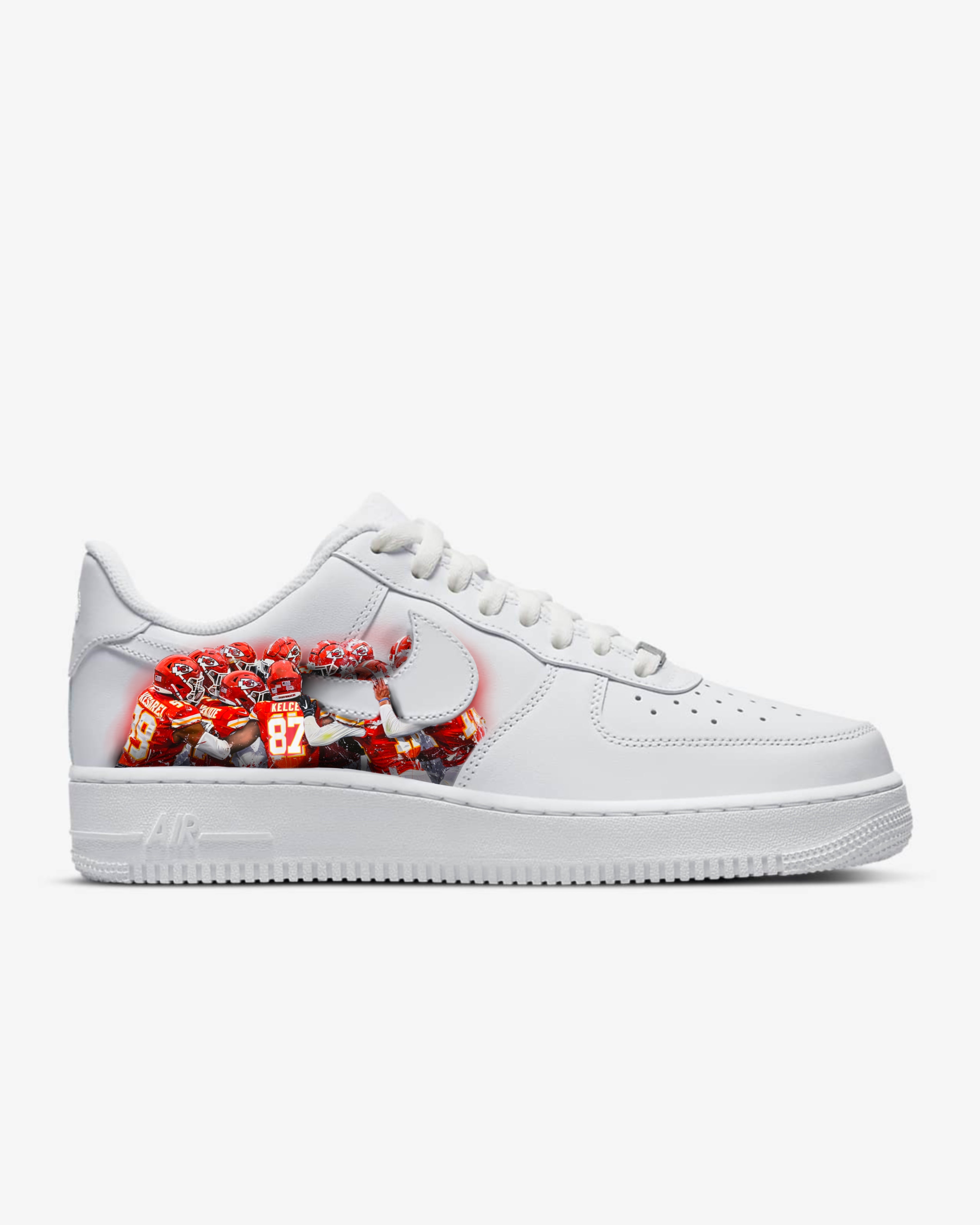 Rep your sneaker game like a champion with our exclusive Kansas City Chiefs Custom Art Air Force 1 Sneakers. Meticulously handcrafted for the ultimate fan, these iconic sneakers celebrate the heart and soul of Kansas City with vibrant, action-packed artwork featuring your favorite Chiefs players. Perfect for game day or everyday wear, these Air Force 1s are more than just shoes—they're wearable art.