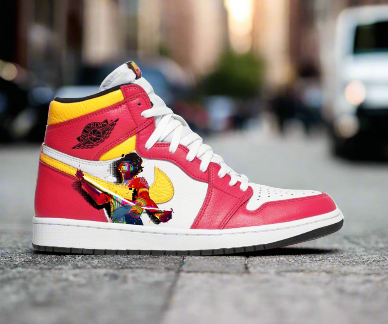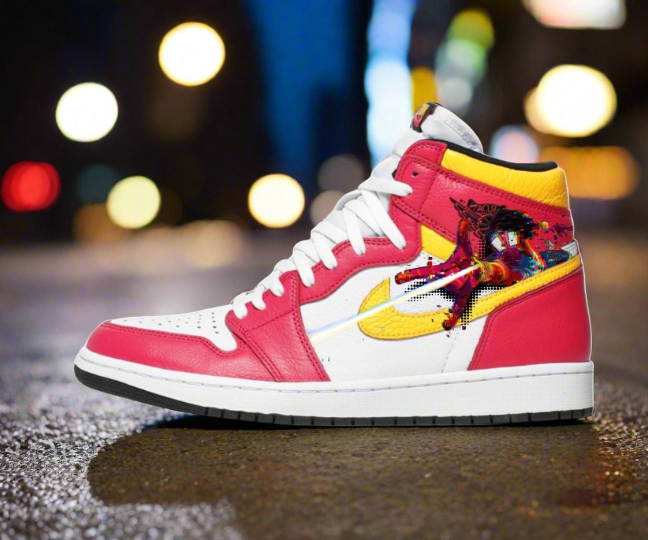 Step into the multiverse with the exclusive Mumbattan Spider-Man Nike Air Jordan 1s | Pavitr Prabhakar Edition. These unique sneakers feature vibrant colors inspired by the movie "Spider-Man: Across the Spider-Verse," showcasing Pavitr Prabhakar, the Spider-Man of Mumbattan. This design integrates premium materials and distinct patterns that reflect the animation style of the Spider-Verse, ensuring you stand out with every step. These Jordans are a must-have for fans and collectors alike. Perfect for everyday wear, special events, or as a standout addition to your sneaker collection.