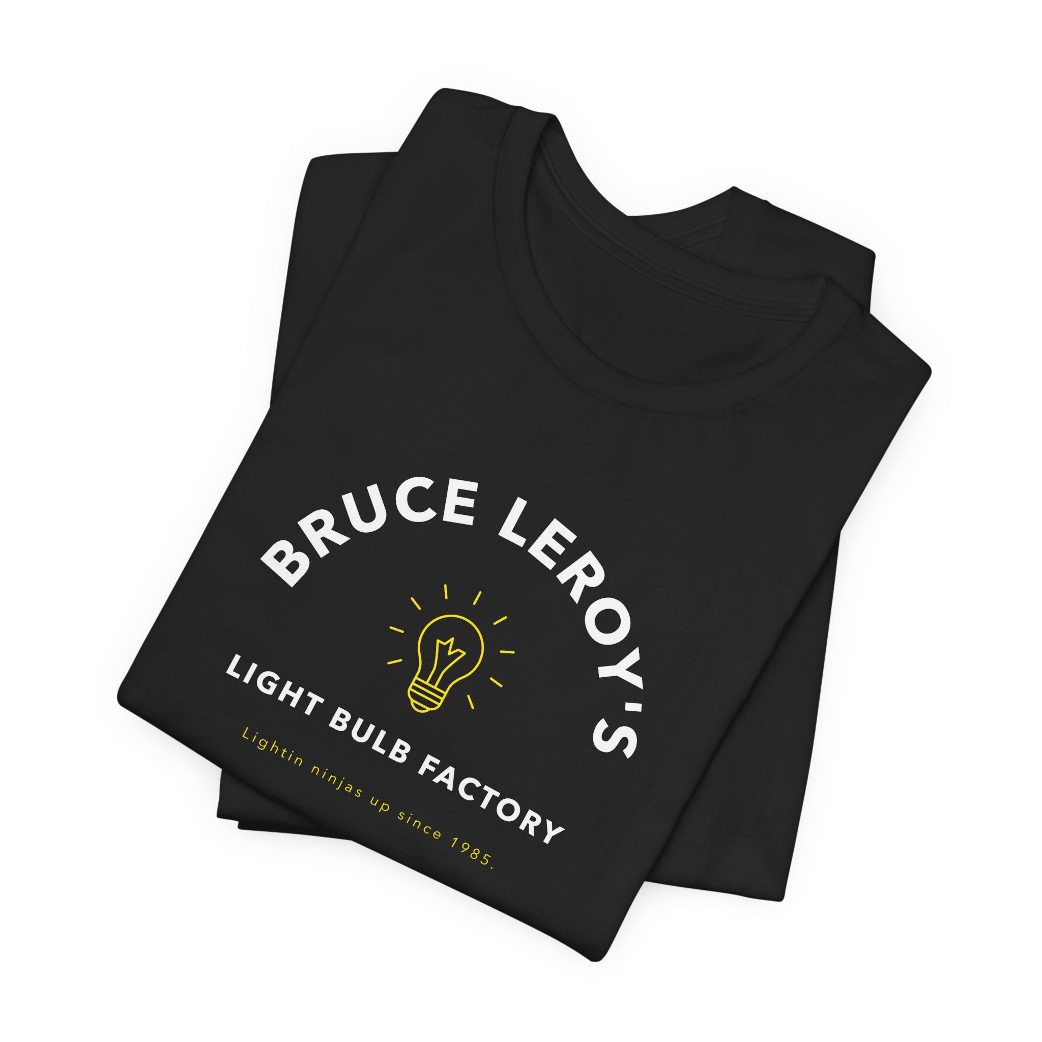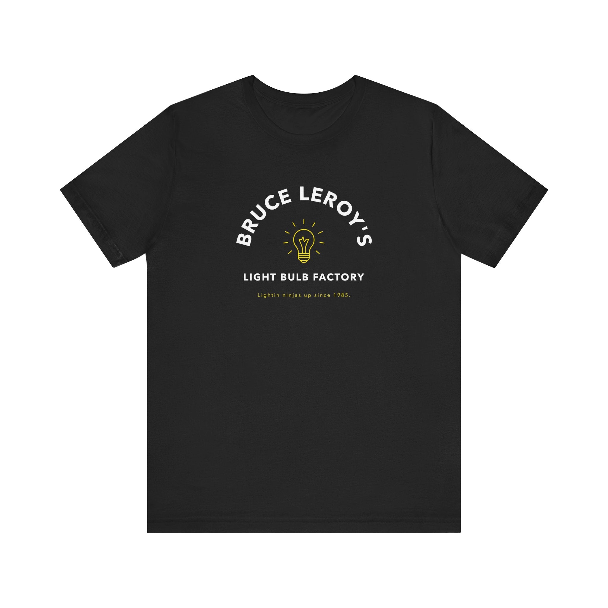 Introducing Bruce Leroy's Ninja Light Bulbs Unisex T-Shirt. This unique t-shirt is perfect for any fan of the classic 80s movie, The Last Dragon. It features a bold design of Bruce Leroy's fictitious light bulb company, making it a must-have for any fan of humorous creativity.
