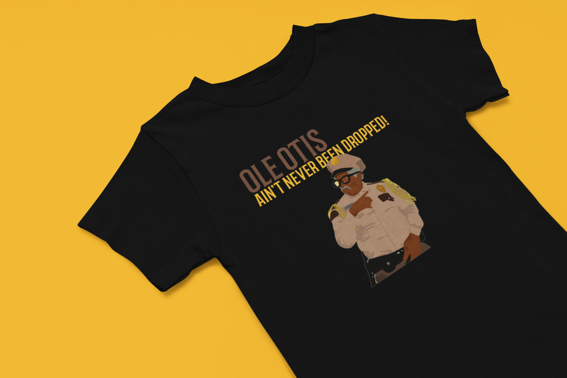 Hey there, it's Otis, your favorite security legend from 'Martin'! You know I ain't never been dropped, and now you can wear my legendary status proudly with this hilarious, eye-catching t-shirt. Perfect for fans of the show and anyone who appreciates no-nonsense humor. This tee is a must-have for your collection. So, don't just stand there – grab yours now and join my elite squad! Trust me, you don't want to mess with Ole Otis!