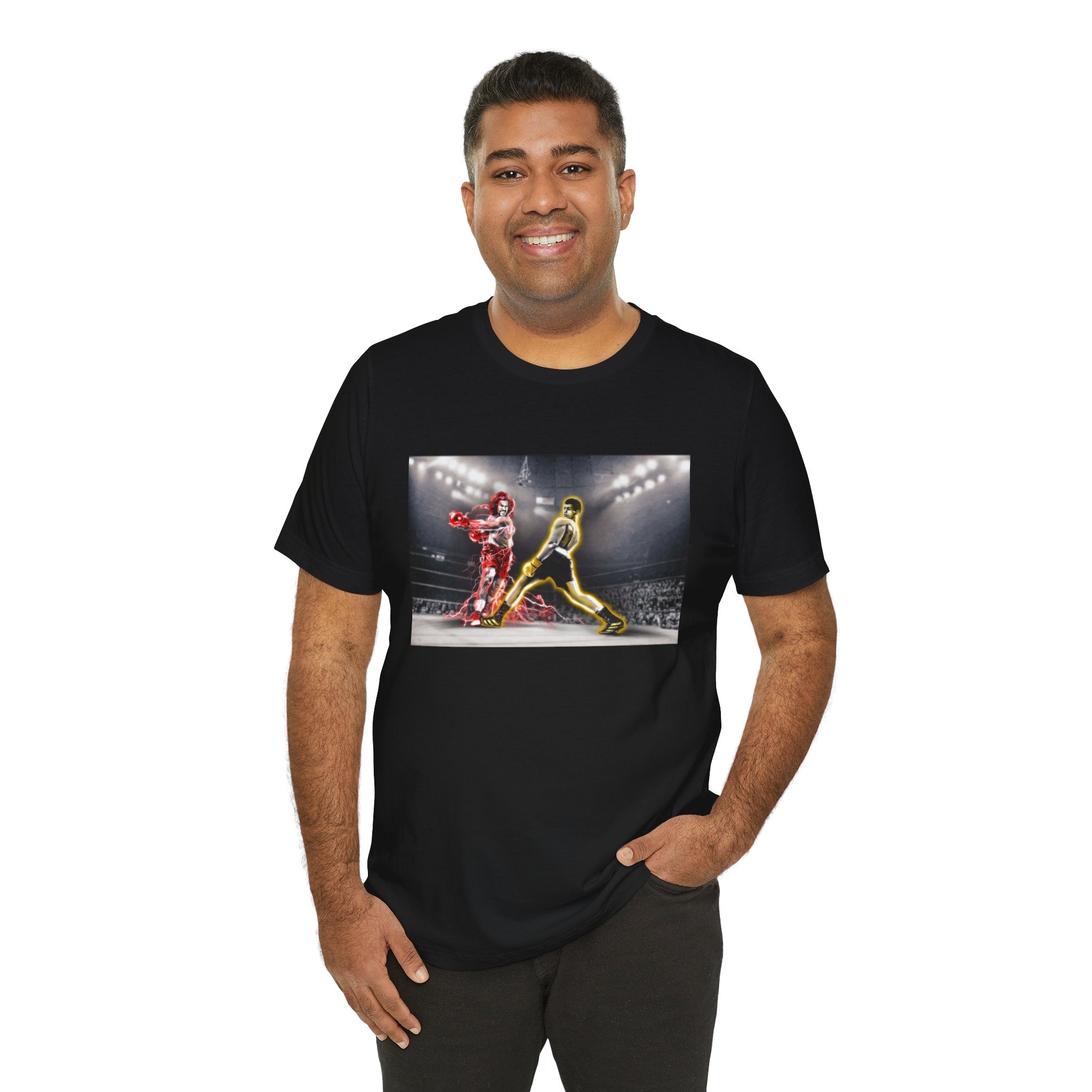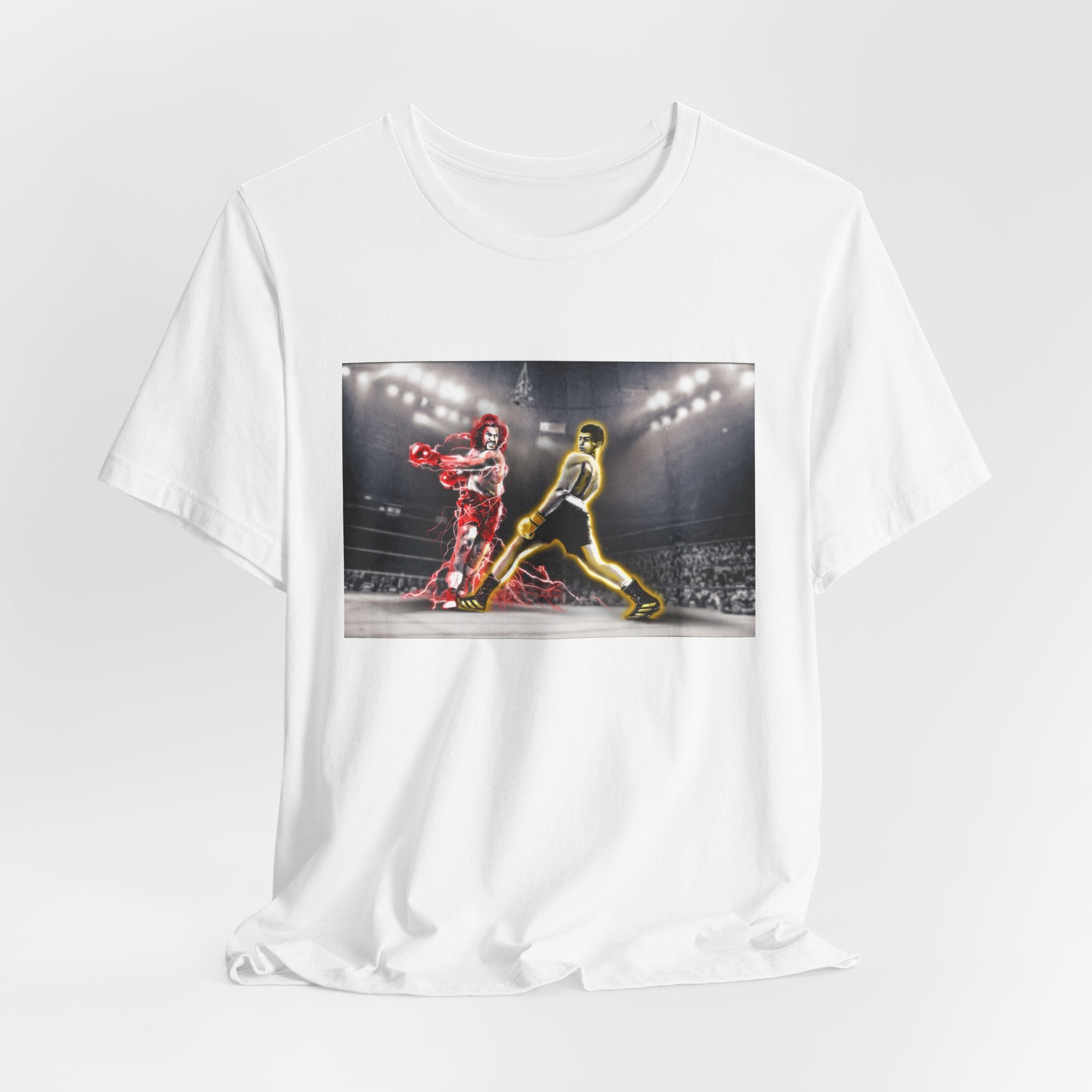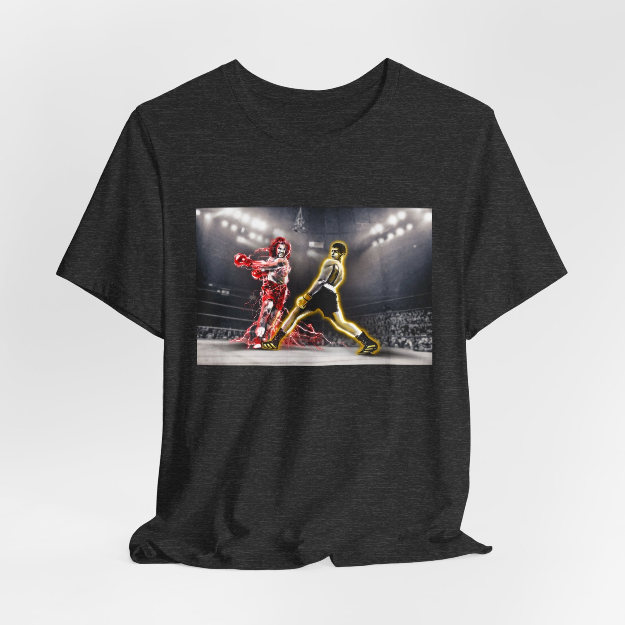 Capture the iconic showdown with our exclusive T-shirt featuring custom artwork inspired by "The Last Dragon" characters Sho'Nuff and Bruce Leroy in a pose reminiscent of the legendary Muhammad Ali vs. Joe Frazier boxing match. Perfect for fans of classic martial arts films and historic boxing events.