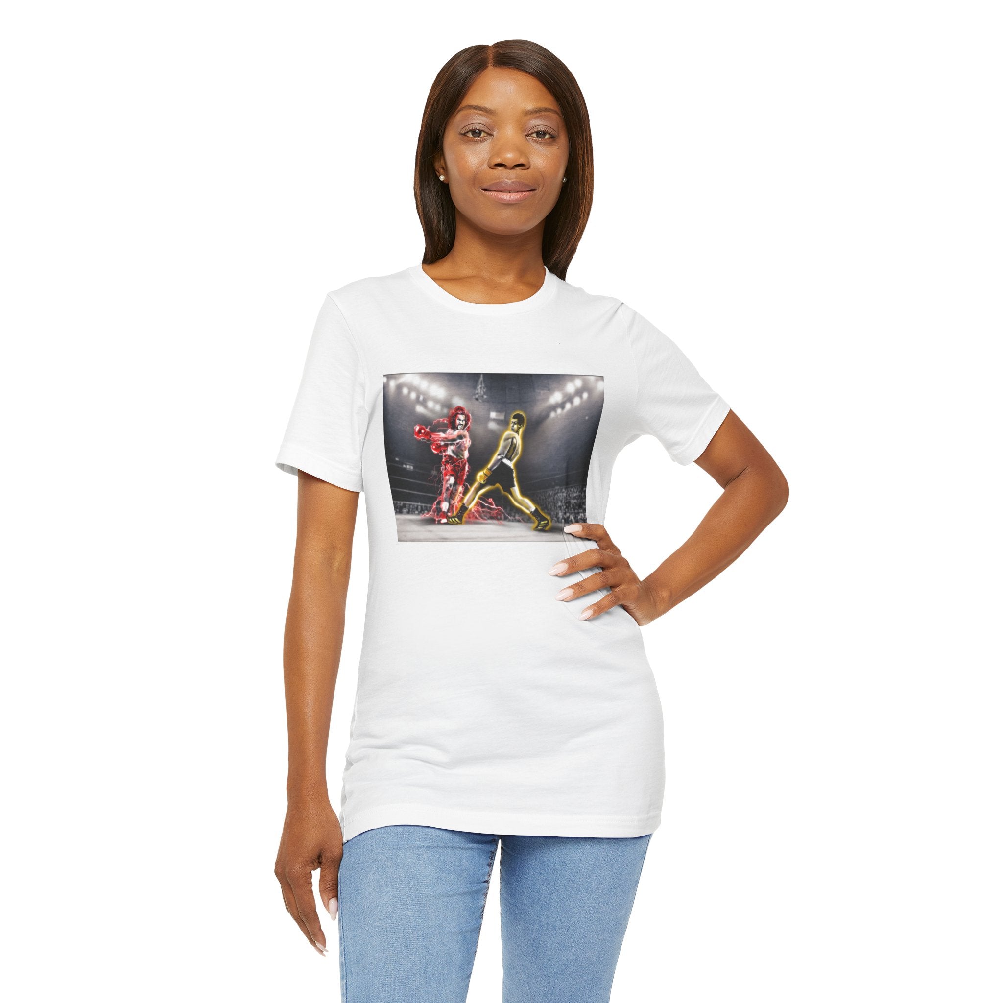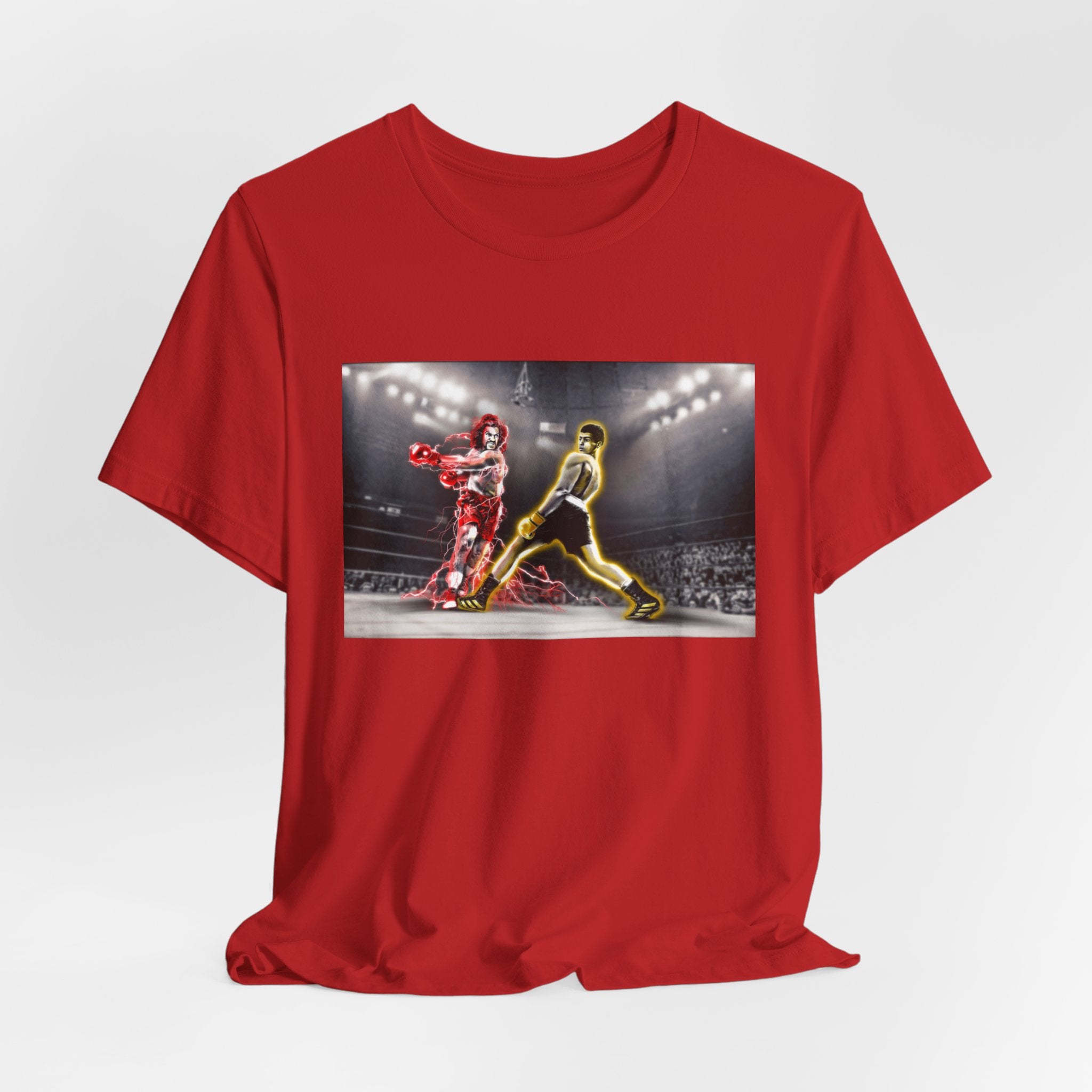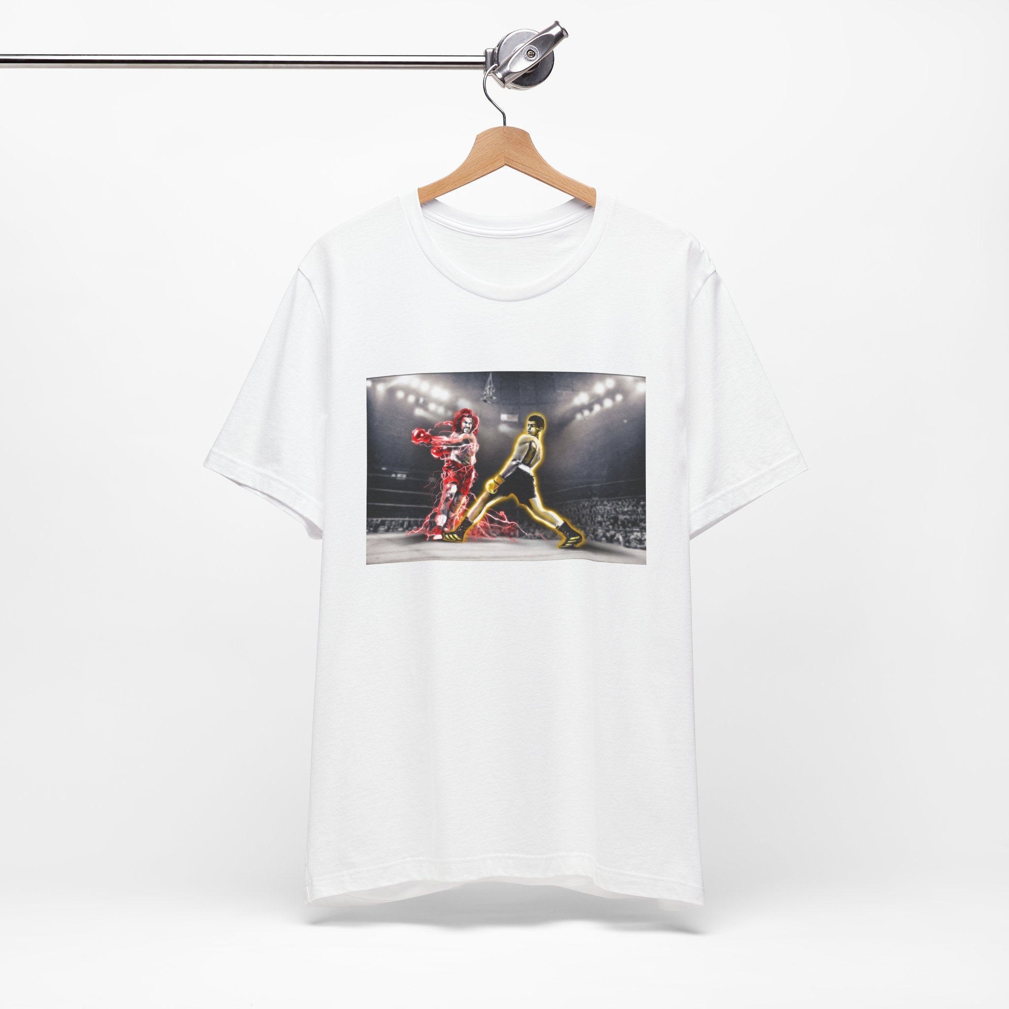 Capture the iconic showdown with our exclusive T-shirt featuring custom artwork inspired by "The Last Dragon" characters Sho'Nuff and Bruce Leroy in a pose reminiscent of the legendary Muhammad Ali vs. Joe Frazier boxing match. Perfect for fans of classic martial arts films and historic boxing events.