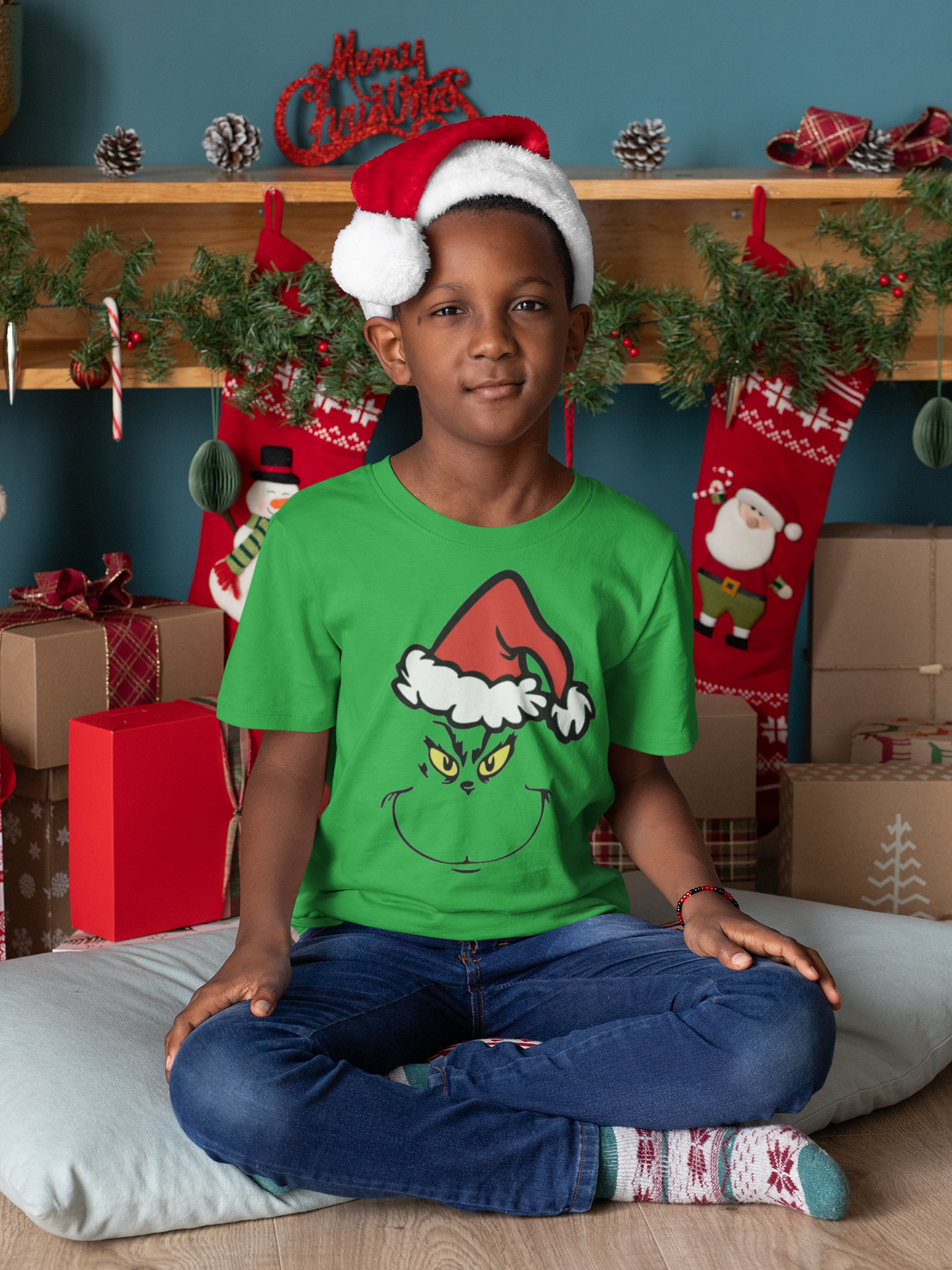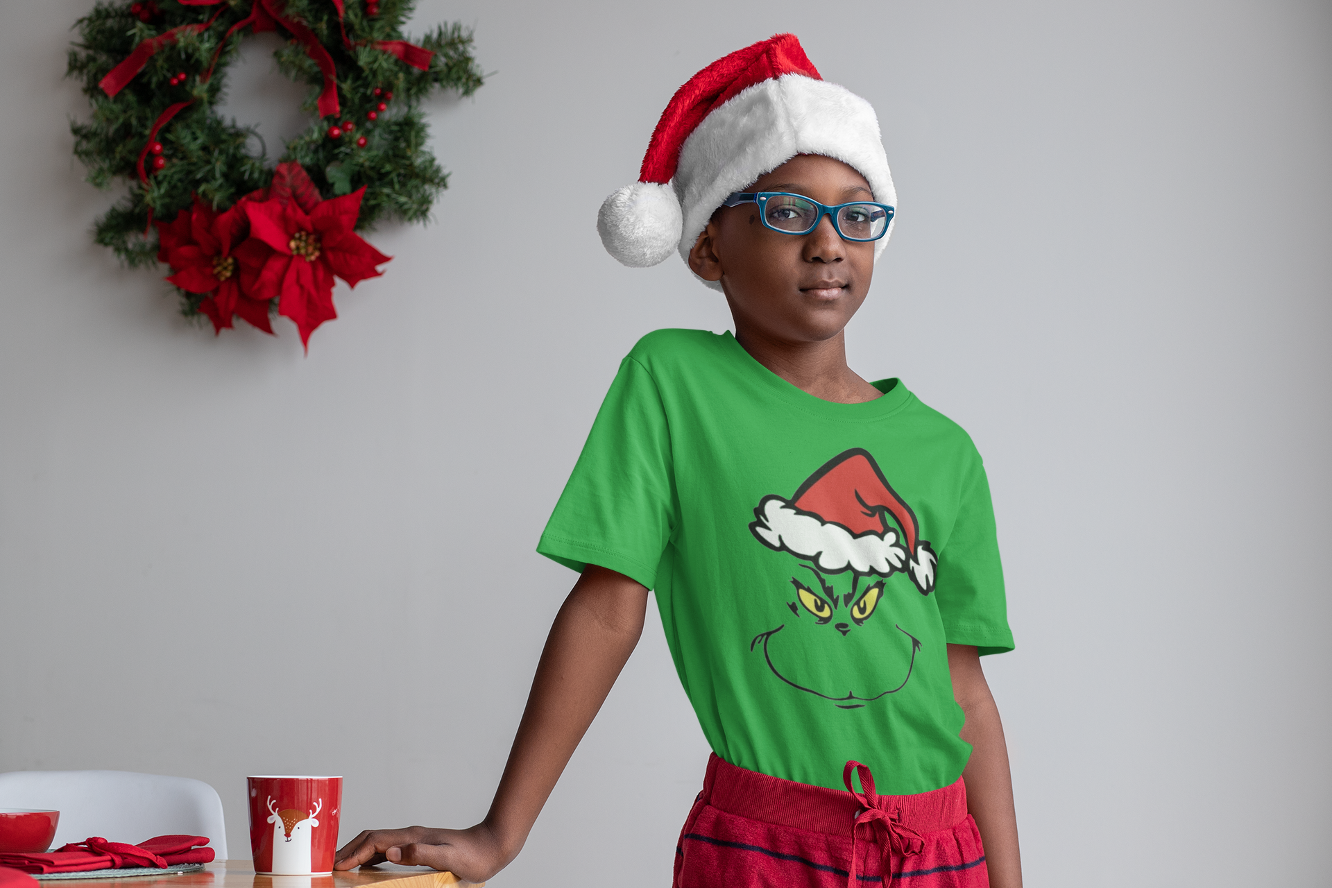 Bring out their inner Grinch this holiday season and make it one to remember with this fun and festive Youth Grinch Face T-Shirt! Perfect as a gift or a treat for the holiday season.