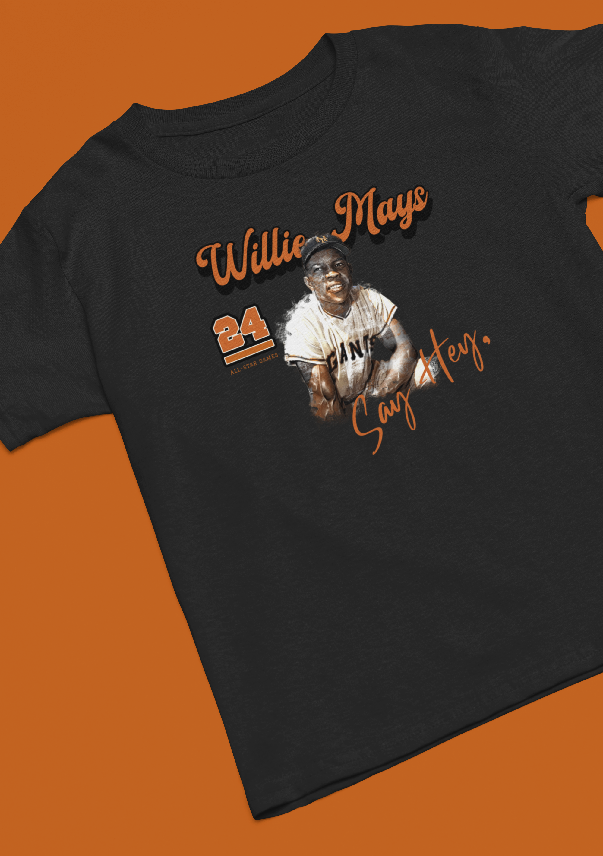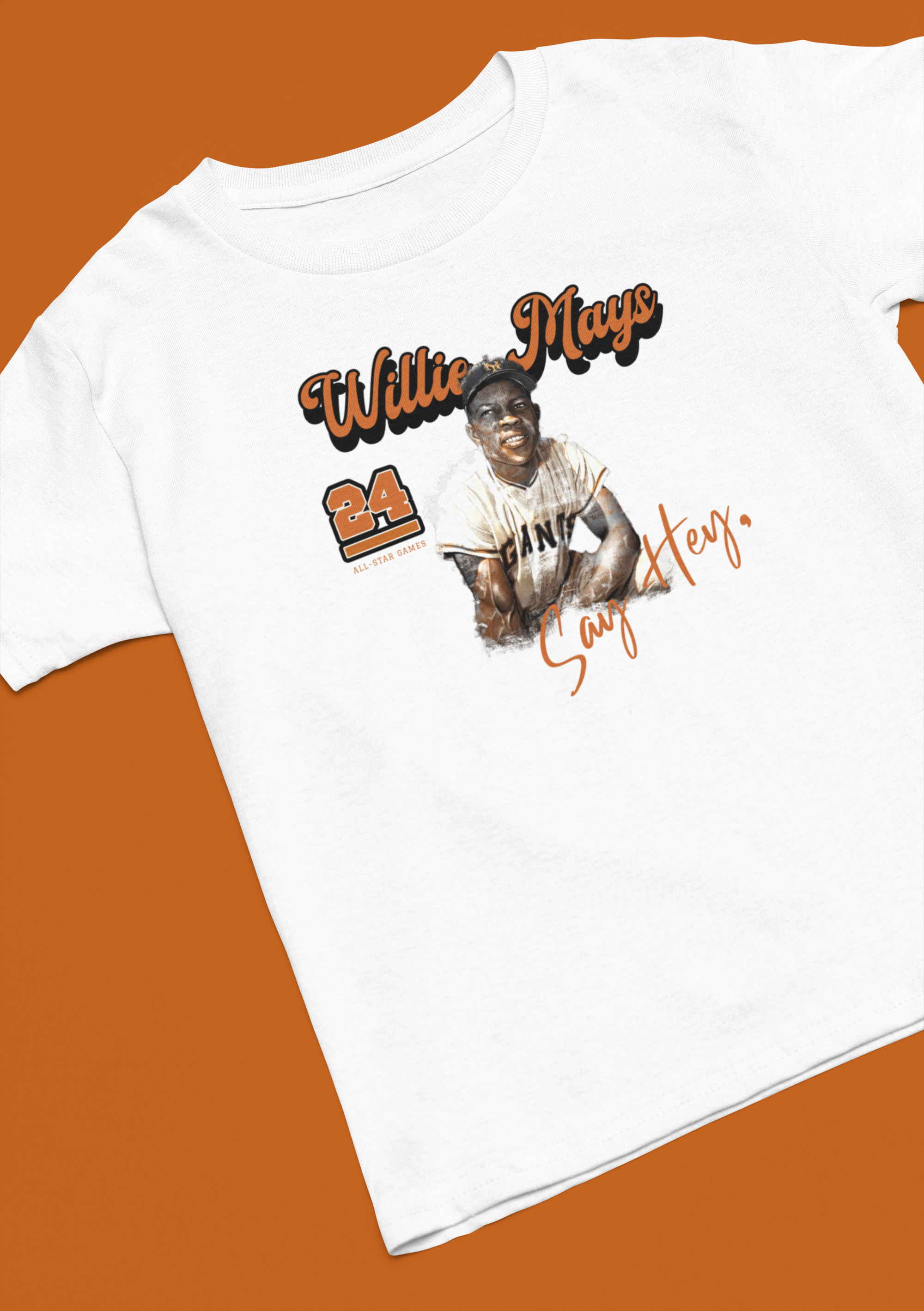 Celebrate the unparalleled legacy of Willie Mays, the Say Hey Kid, with this exclusive, must-have t-shirt! Honor the life and impact of one of baseball's greatest legends, whose incredible talent and infectious spirit changed the game forever.